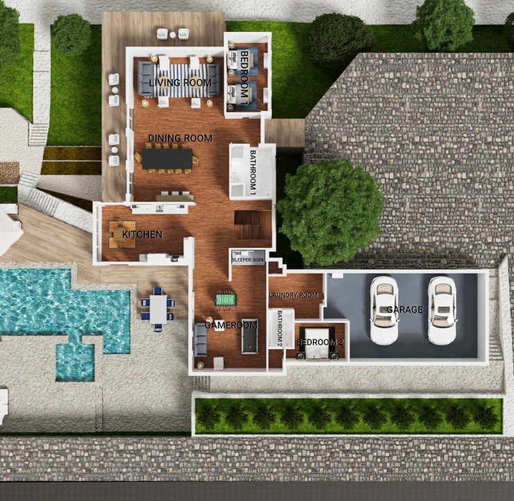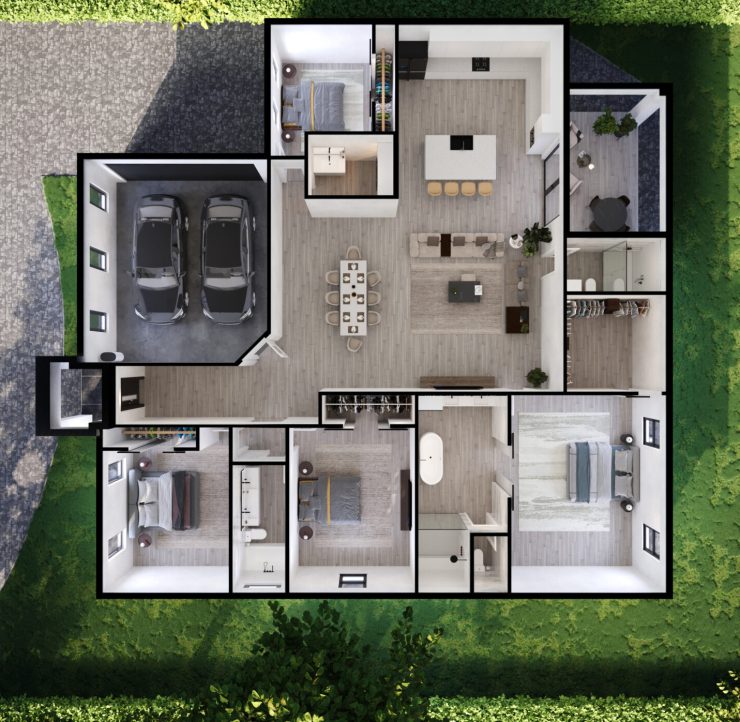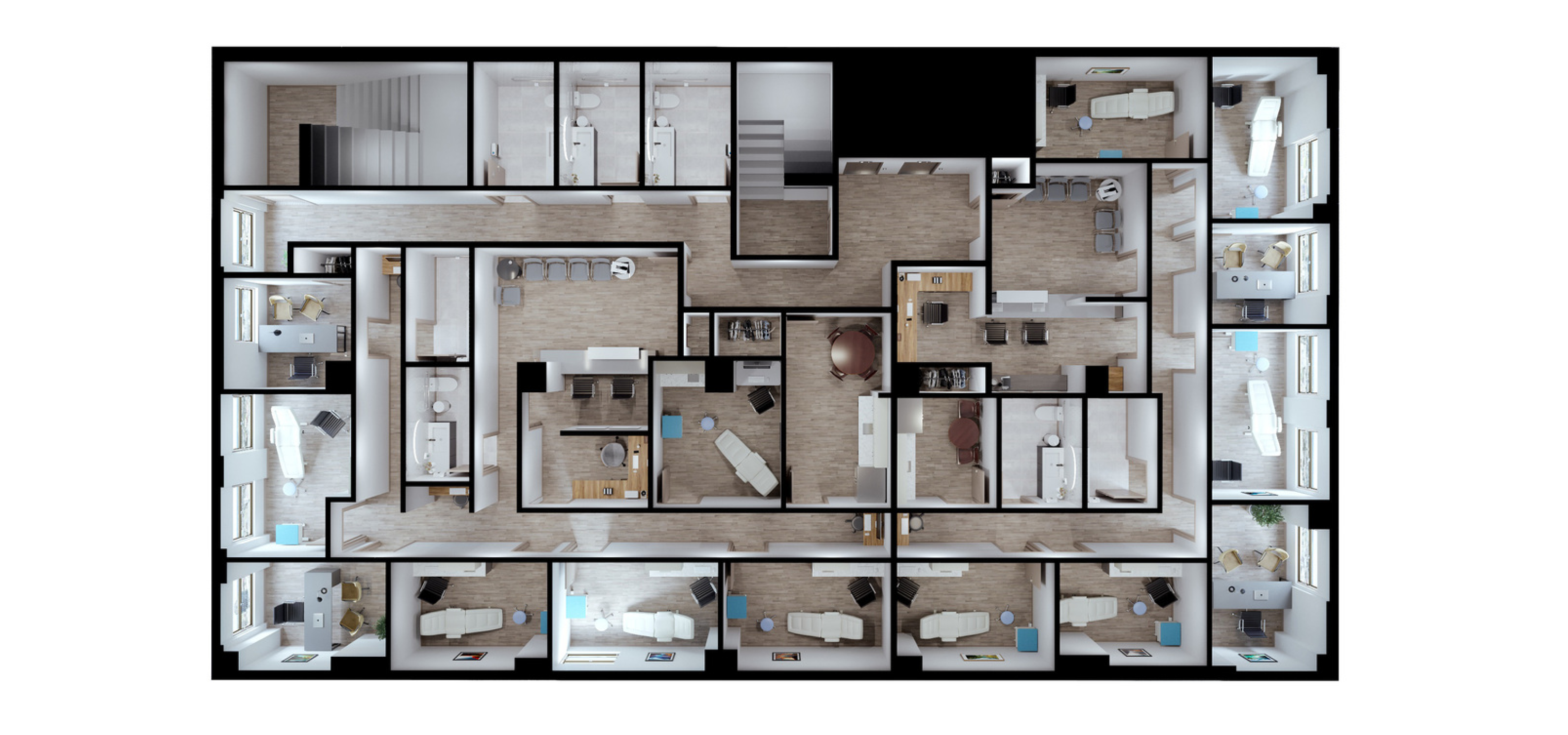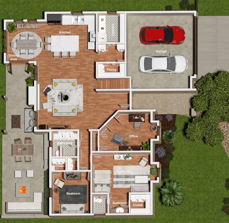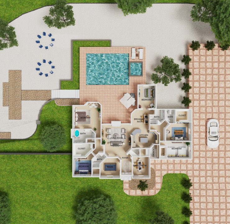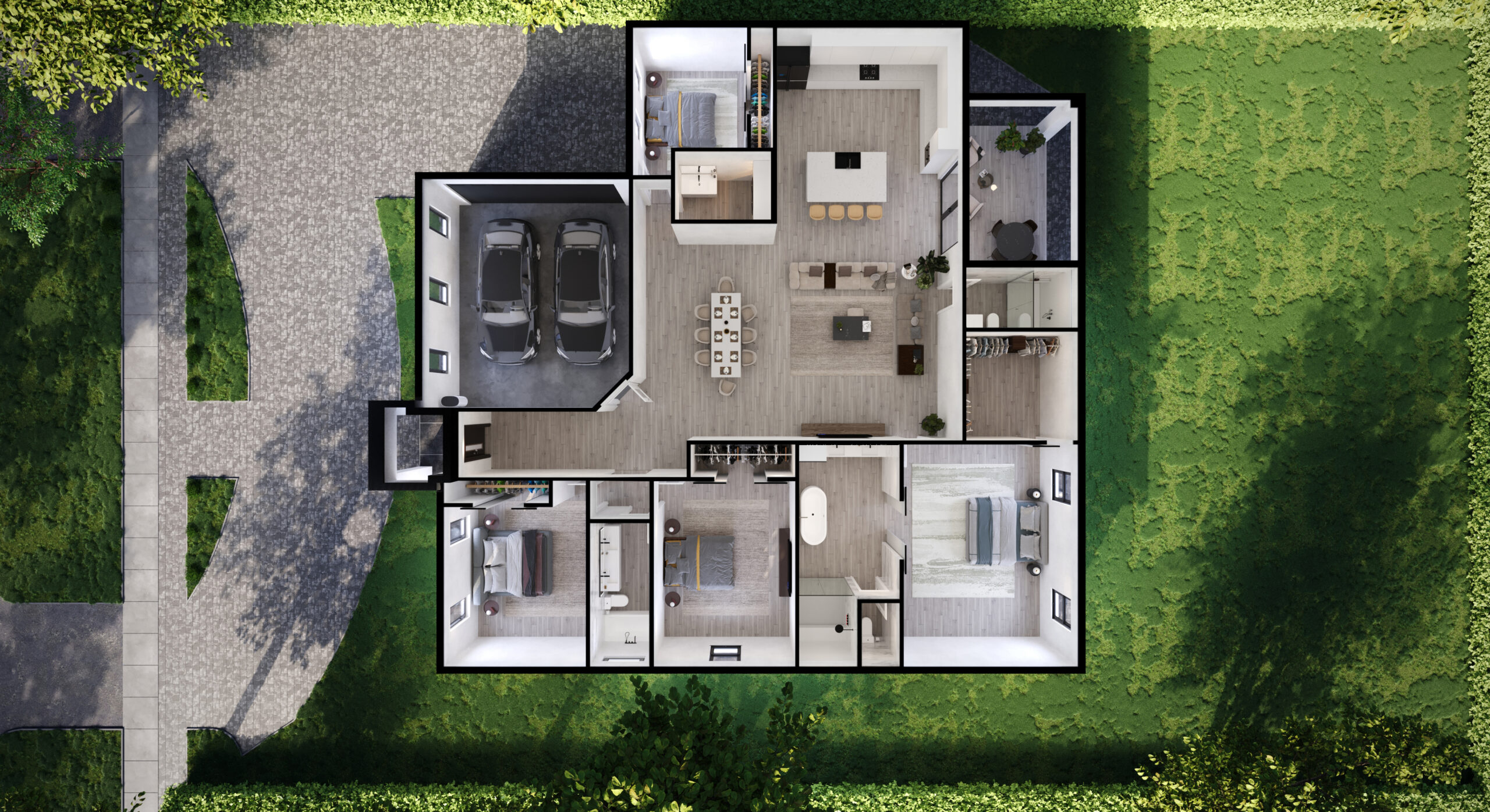 All the important facts about the layout of the property, in an easy-to-understand visual format. Floor plan professionally drafted in architectural style, complete with labels, dimensions, and square footages.